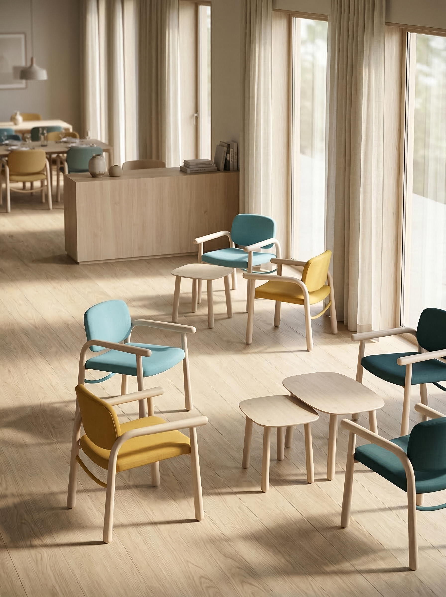 Specially designed for retirement homes, the CEIBA COLLECTION is an attempt to offer the oldest members of our society a well-designed product that is adapted to the ergonomic needs of its users and perfectly accompanies them in their everyday lives.